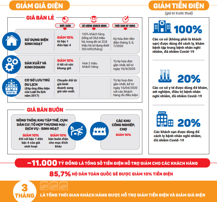Tập đoàn Điện lực Việt Nam chính thức triển khai thực hiện giảm giá bán điện, giảm tiền điện cho các khách hàng bị ảnh hưởng bởi COVID-19