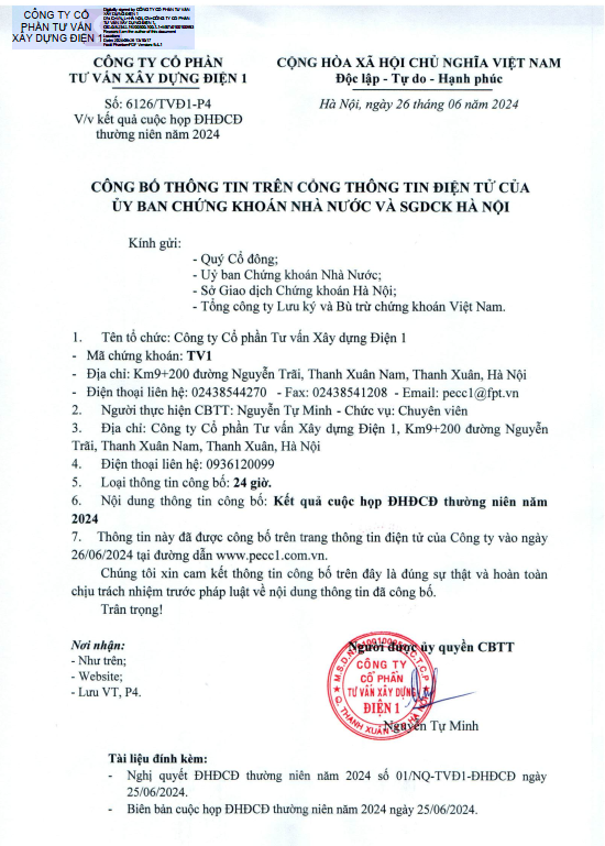 PECC1 tổ chức thành công ĐHĐCĐ thường niên năm 2024