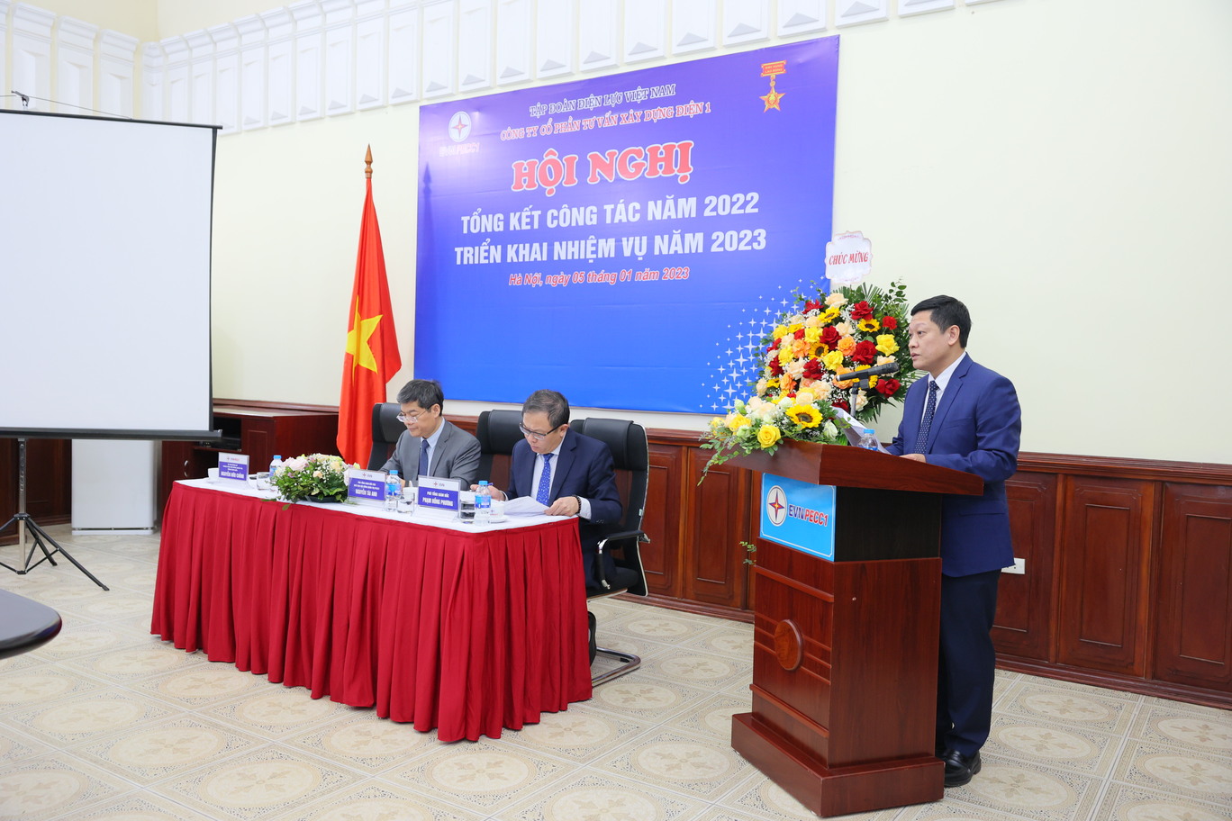 Ông Nguyễn Hữu Chỉnh - Tổng Giám đốc EVNPECC1 đọc báo cáo Tổng kết năm 2022 - Kế hoạch SXKD năm 2023.