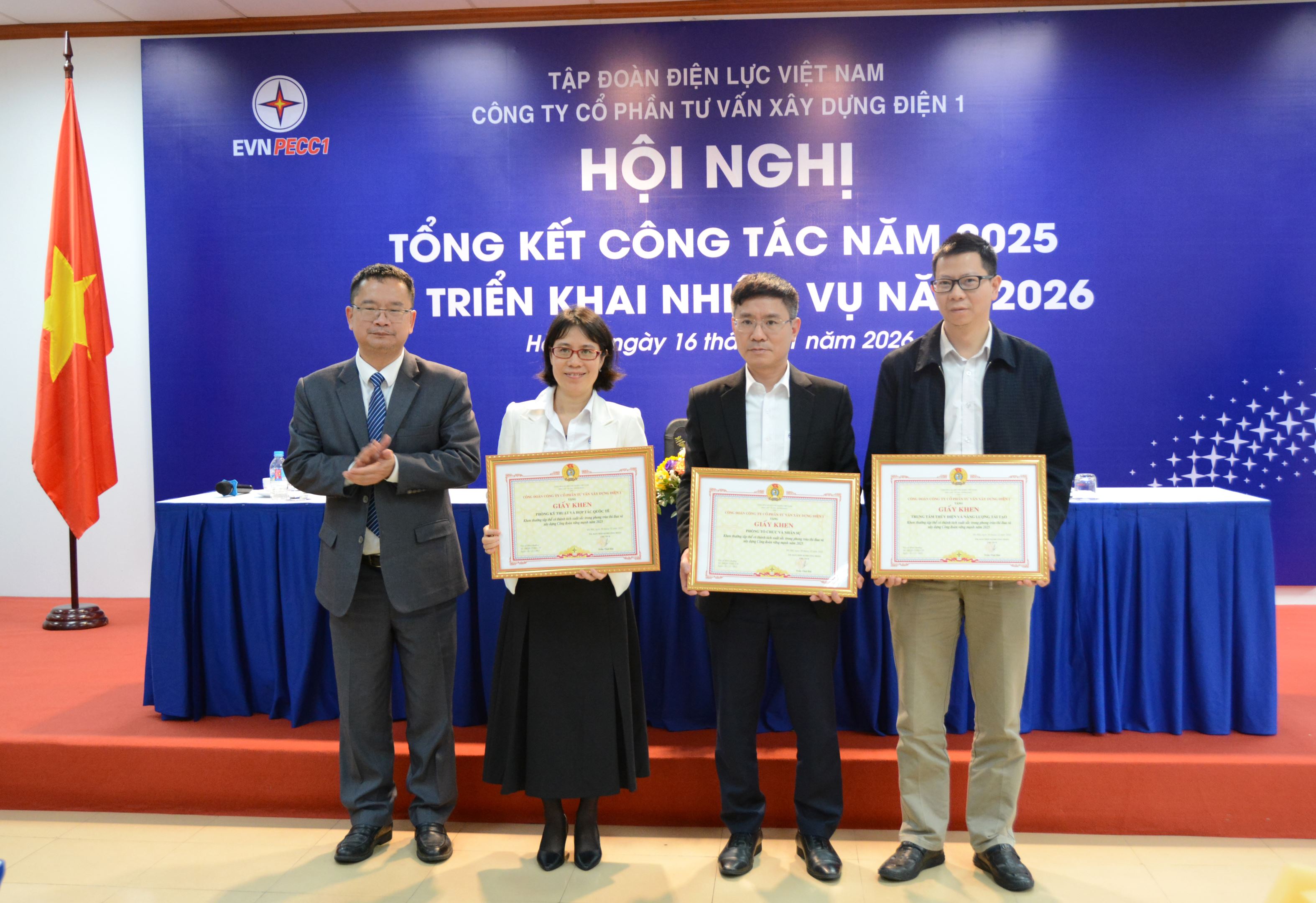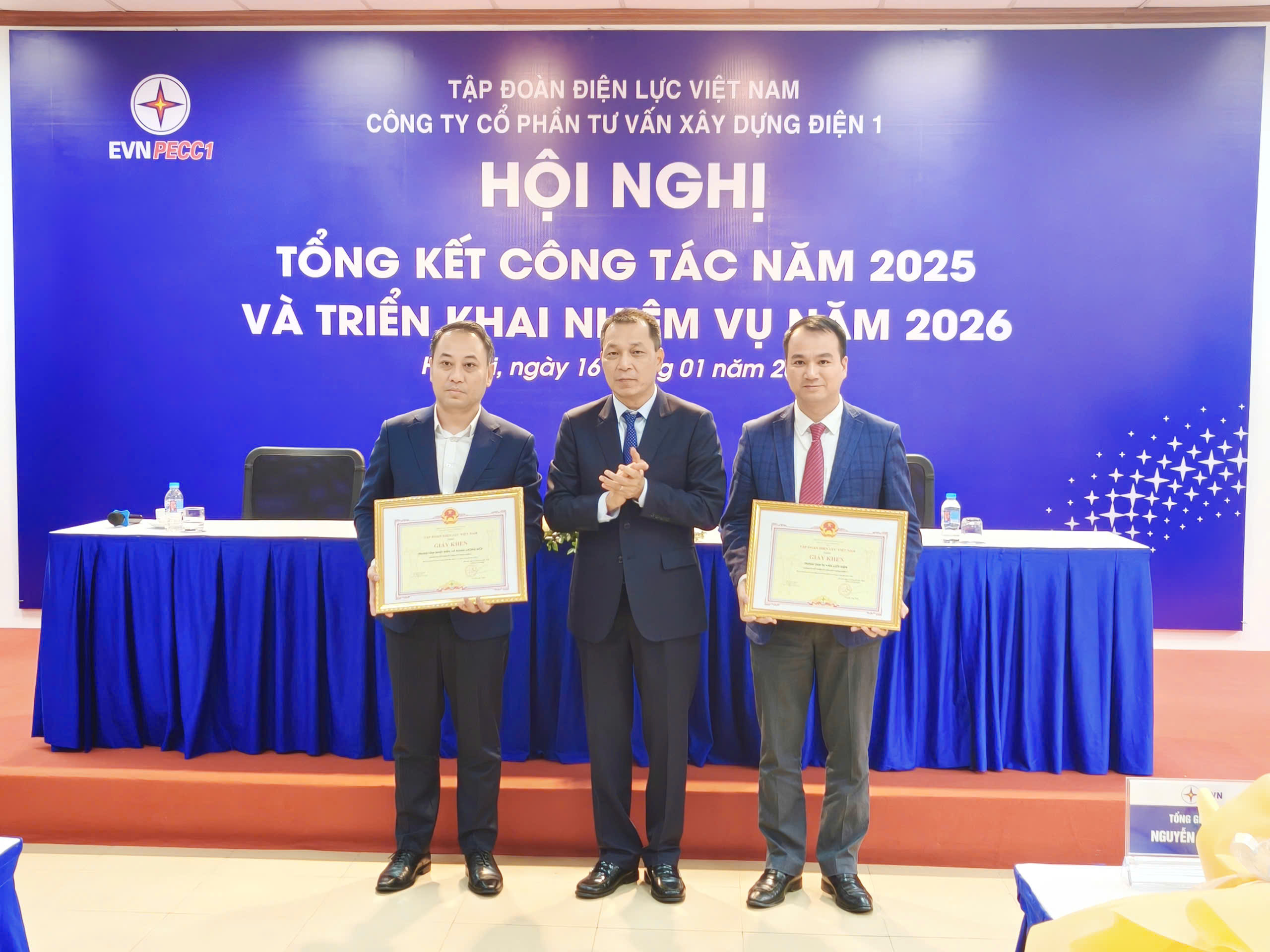 Cùng với đó, EVN đã tặng Giấy khen cho 02 tập thể gồm Trung tâm Tư vấn Lưới điện và Trung tâm Nhiệt điện và Năng lượng mới, cùng 10 cá nhân tiêu biểu của Công ty, trong đó có Chủ tịch Hội đồng quản trị, Tổng Giám đốc và các cán bộ quản lý, chuyên gia kỹ thuật. Đây là sự ghi nhận xứng đáng đối với tinh thần trách nhiệm, nỗ lực và những đóng góp quan trọng của các tập thể, cá nhân trong việc hoàn thành xuất sắc nhiệm vụ, góp phần vào thành công chung của PECC1 và Tập đoàn Điện lực Việt Nam.